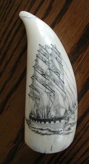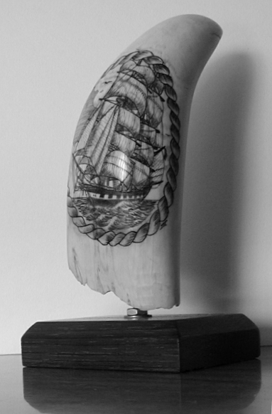 Hand engraved on sperm whales' teeth
